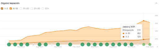 📈 Organic traffic climbed from 2,061 in March 2024 to 2,932 in January 2025—a 42% increase in just 10 months.